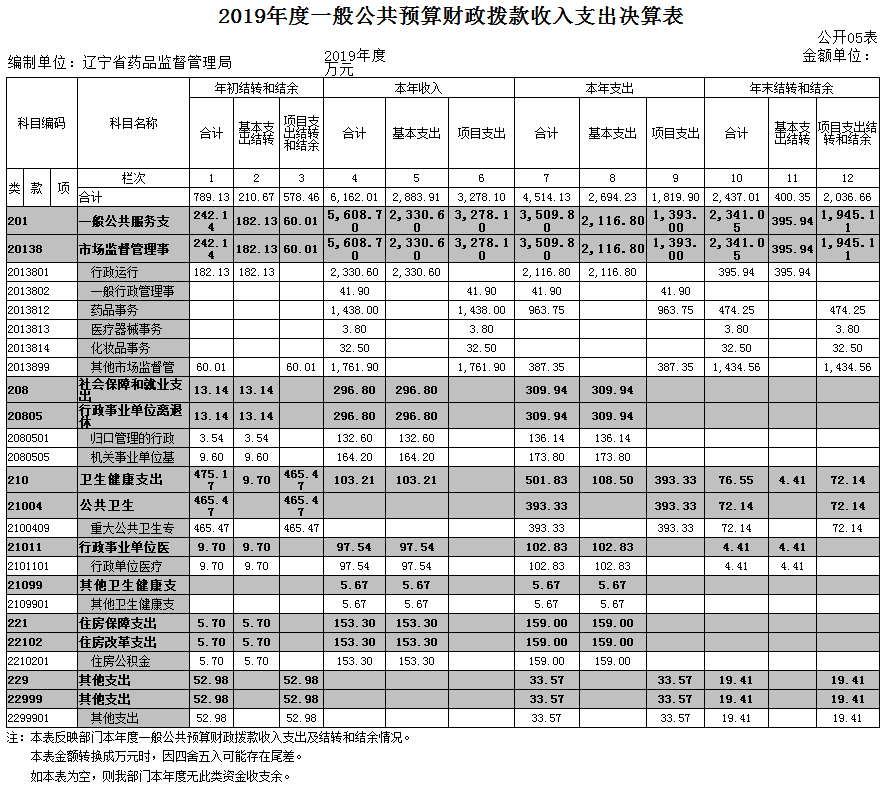 五、2019年度一般公共预算财政拨款收入支出决算表